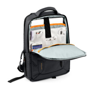Morral con cargaderas ajustables y acolchadas, bolsillo principal con compartimiento apropiado para portátil de 14″. Bolsillo medio con compartimiento para documentos, celular y Lapiceros, bolsillo frontal con cremallera lateral y bolsillos laterales en malla.
