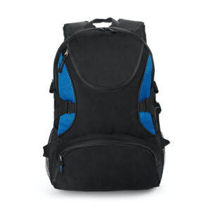 Morral con cargaderas ajustables, Bolsillos laterales en malla, bolsillos frontales y principal con cierre en cremallera, compartimiento para el portátil de 14″.